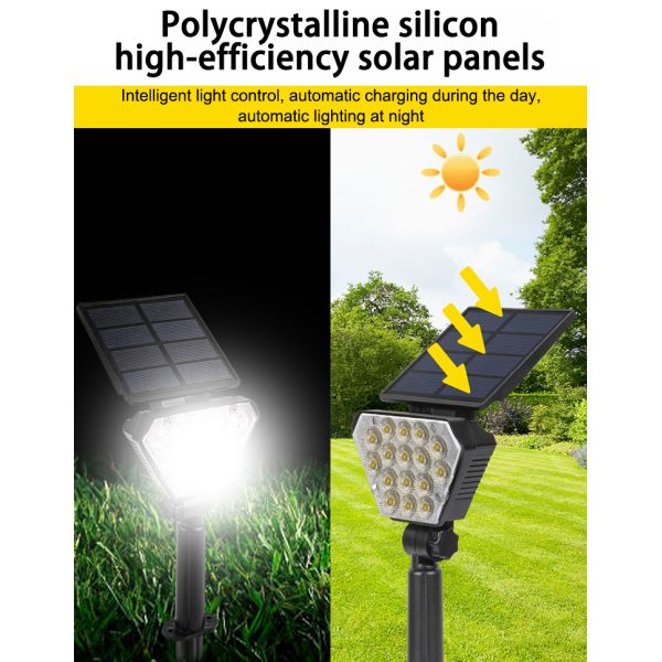 16LED Solar Lawn Light 12W Super Bright Beads Double Angle Adjustable With Removable Rod Images |