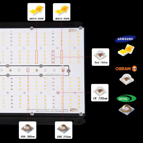 Light Source : Samsung lm301H top bin diodes + 660nm +730nm+385nm+381nm
